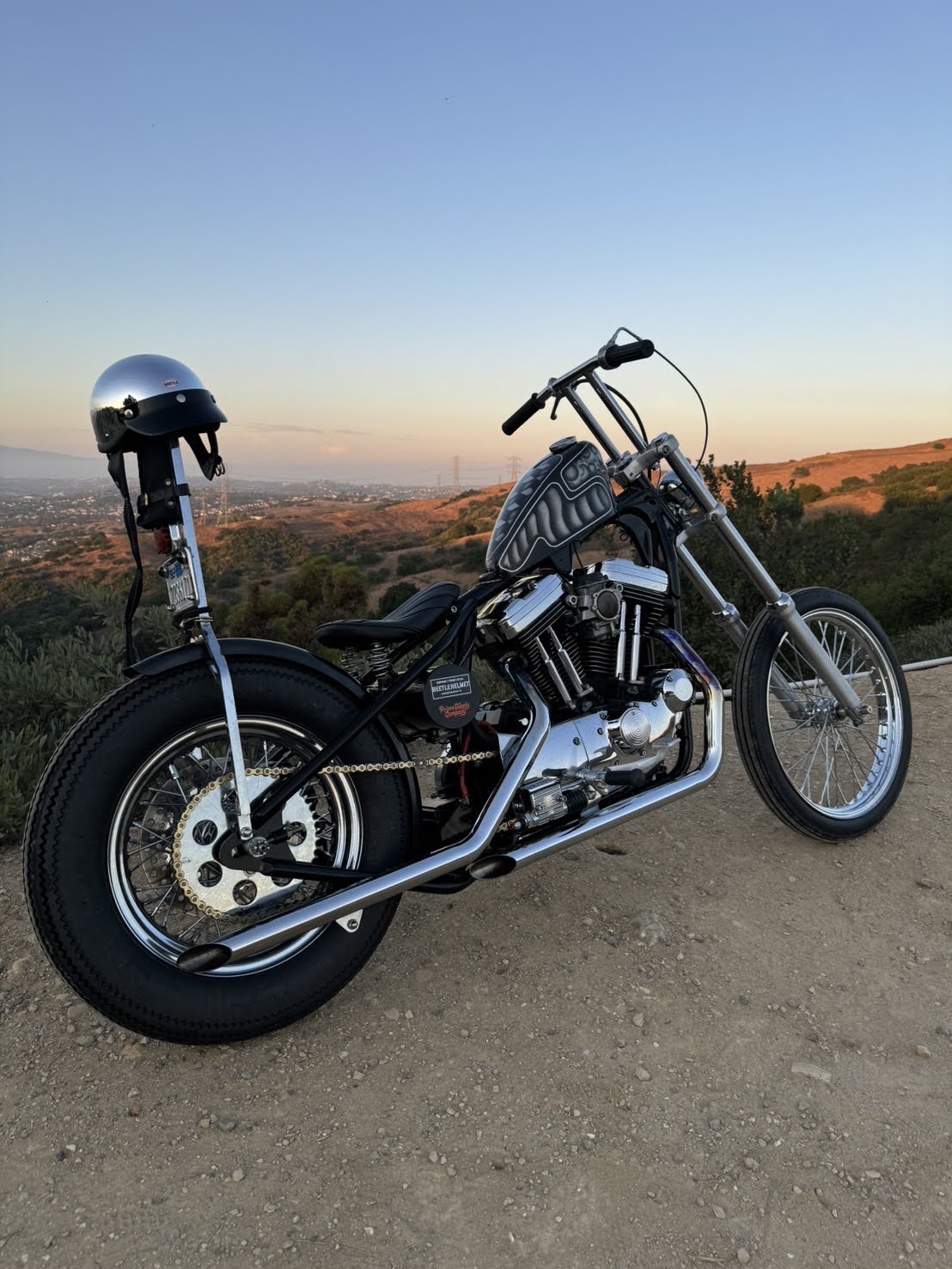A custom chopper based on the iconic Evolution Sportster—an enduring symbol of classic American motorcycles. This bike preserves a vintage look while offering the comfort and rideability suited for today’s riders. With its signature long front forks and minimal design, it commands attention wherever it goes. The 883cc engine delivers strong torque and smooth acceleration, making it a perfect match for cruising along California’s open roads.